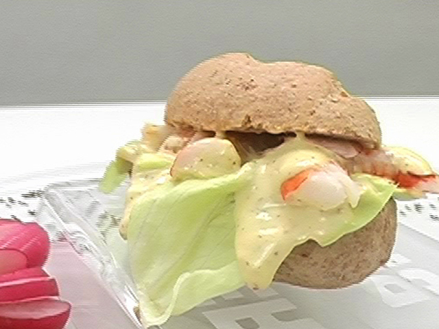 Вкусный багет для любителей креветок.Состав:цельнозерновой багет — 4 штуки;редис — 3 штуки;креветки — 5 штук;лимонный сок — 25 гр;яйцо — 1 штука;несколько листьев салата;соль, чесночная соль, зернистая горчица, белый перец, оливковое масло, вишневый уксус — по вкусу.