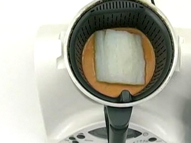 Готовим рыбу на пару.Состав:треска — 1 штука;рыбный бульон — 2 стакана;яблоко — 1 штука;лук — 1 штука;перец — 1/2 штуки;оливковое масло, соль, паприка.