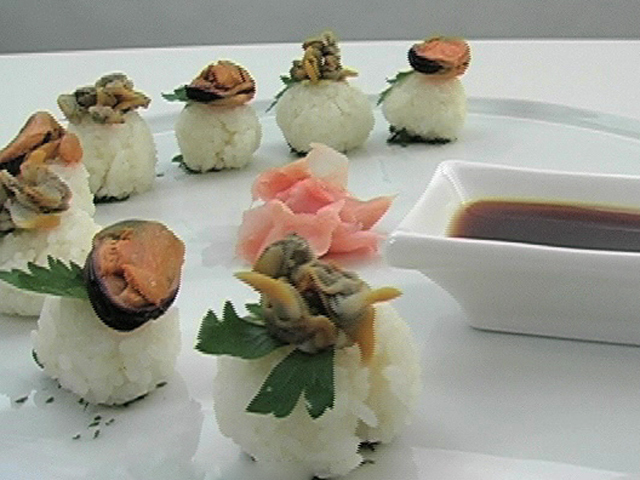 Новый рецепт суши с морепродуктами.Состав:мидии — 1 банка;моллюски — 1 банка;петрушка — 1 пучок;гари — 20 гр;рис — 100 гр;васаби — 1 чайная ложка.